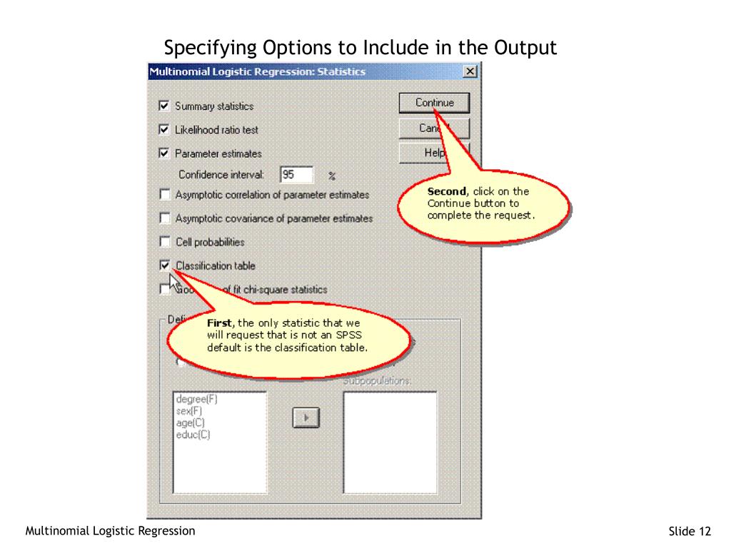 Specifying Options to Include in the Output Multinomial Logistic Regression