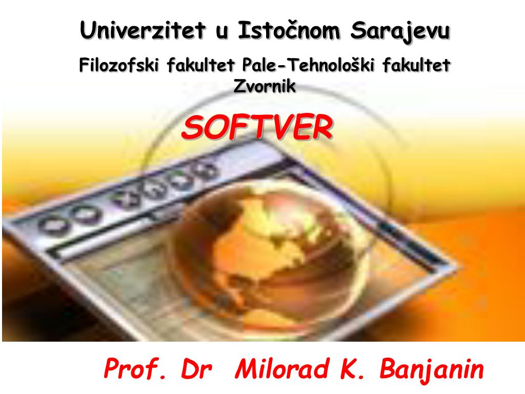 Univerzitet u Istočnom Sarajevu Filozofski fakultet Pale-Tehnološki fakultet Zvornik SOFTVER Prof. Dr Milorad K. Banjanin