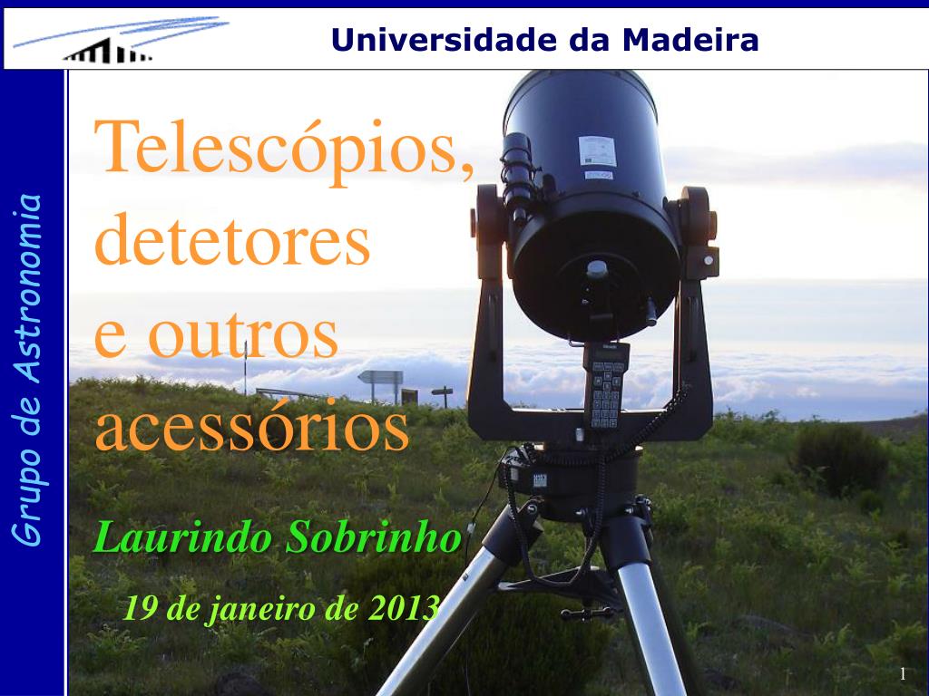 Universidade da Madeira Telescópios, detetores e outros acessórios Grupo de Astronomia Laurindo Sobrinho 19 de janeiro de 2013 1