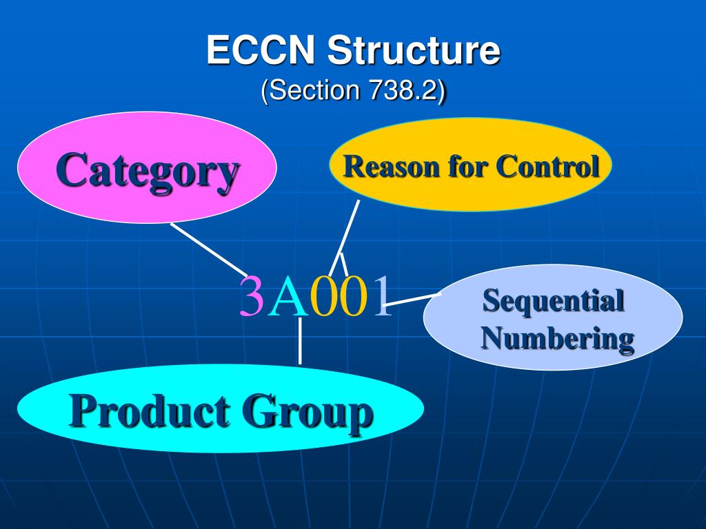 ECCN Structure(Section 738.2) Category Reason for Control 3A001 Sequential Numbering Product Group
