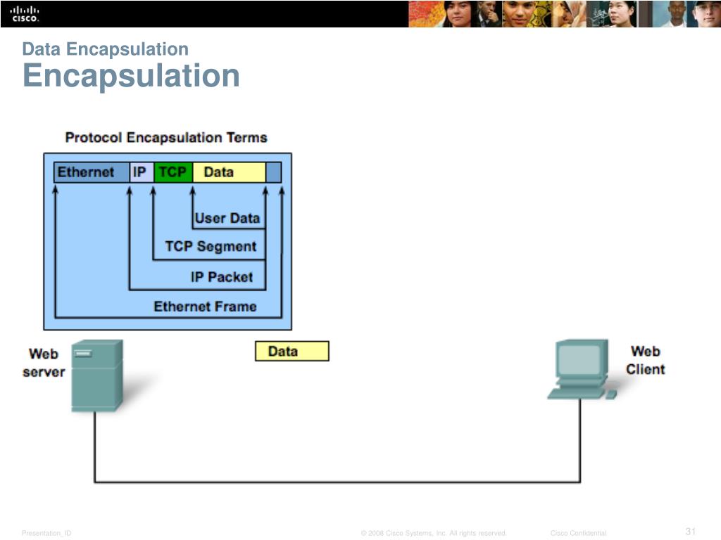 Data EncapsulationCommunicating the Messages • Segmenting message benefits • Different conversations can be interleaved • Increased reliability of network communications • Segmenting message disadvantage • Increased level of complexity
