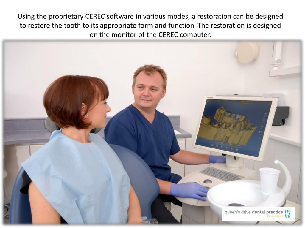 Using the proprietary CEREC software in various modes, a restoration can be designed to restore the tooth to its appropriate form and function .The restoration is designed on the monitor of the CEREC computer.