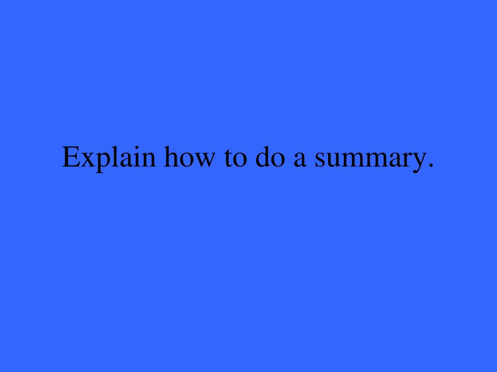 Make a topic sentence that identifies the title and author and uses a strong verb to explain the main idea. • Provide details from the thing you’re summarizing to explain the main idea.