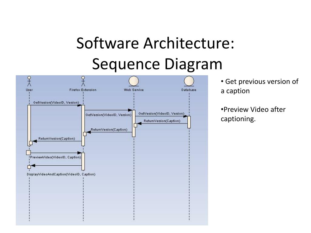Software Architecture: Sequence Diagram • Get captions for a video. • Write the Flash player on the website and play the video. • Save the caption.