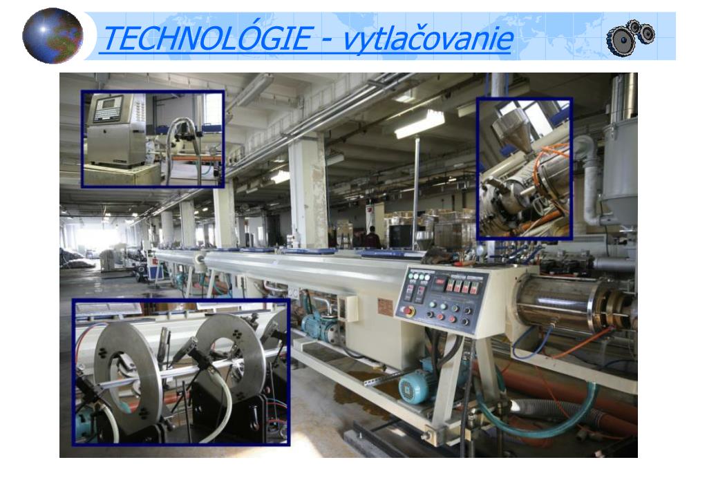 SLOVPLAST MYJAVA, a.s. - Technológie • Technologické vybavenie : • spoločnosť vlastní nové technológiena najlepšej svetovej úrovni : • vstrekovacie stroje značky HAITIAN , ARBURG , BOY • extrudačné linky značky EAGLE MOŽNOSTI : 1. Vstrekovanie - plastových výrobkov s hmotnosťou do 1700 g ( PP ), - uzatváracia sila do 4500 kN, - rozmery medzi tyčami do 780 x 780 mm - minimálna / maximálna výška formy do 330 / 780 mm . 2. Vytlačovanie 1. vysokorýchlostná vytlačovačia linka na rúry z materiálu PP – R f16 – 63 mm - kapacita extrudera až 270 kg / h ( PP ) - odťah rúry až 20 m / min. ( f 16 a 20 mm ) 2. vytlačovacia linka na rúry STABI f 16 – 63 mm a zároveň vysokorychlostná vytlačovačia linka na rúry z materiálu PP – R f16 – 63 mm .