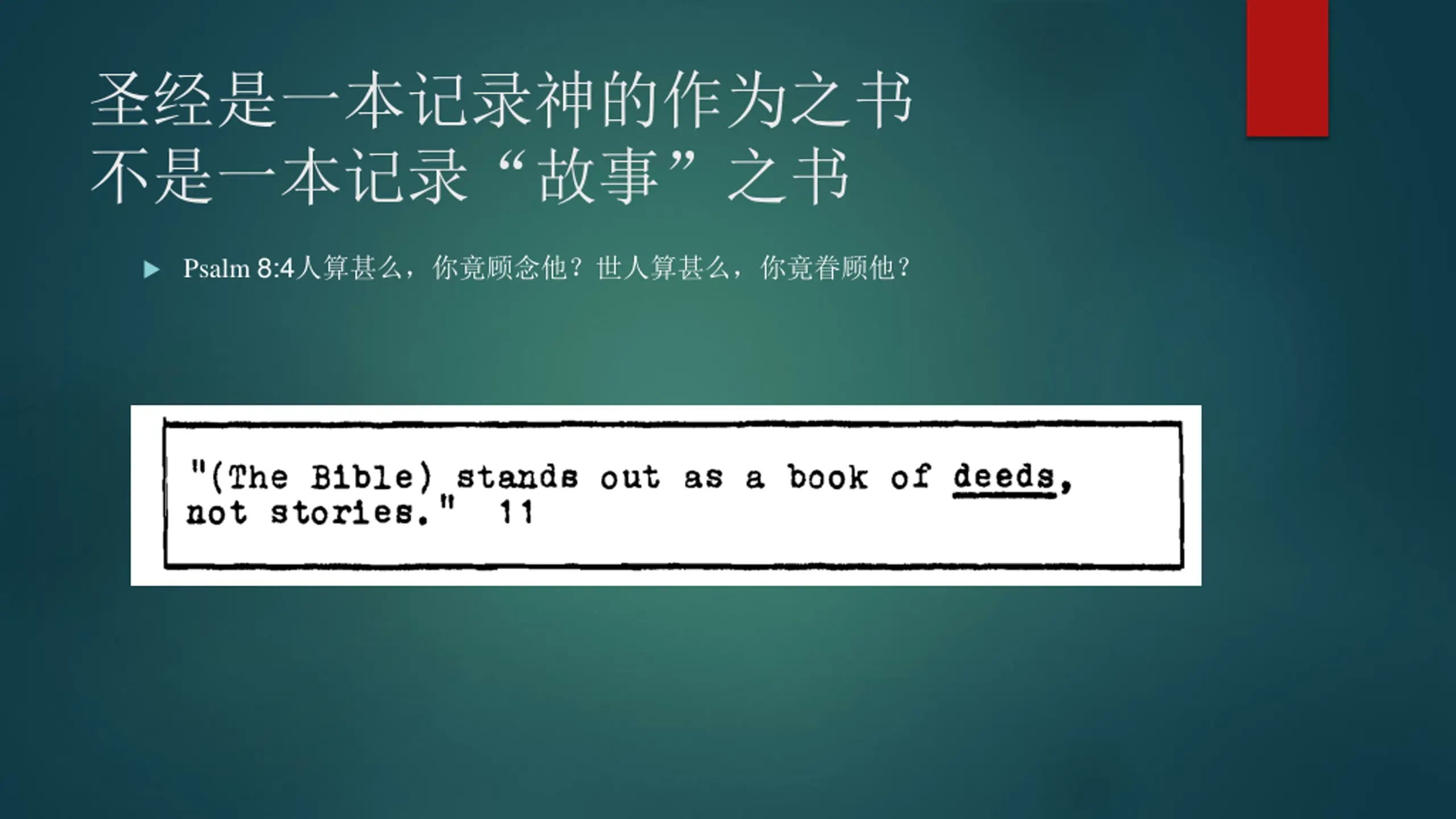 圣经是一本记录神的作为之书 不是一本记录“故事”之书 Psalm 8:4人算甚么,你竟顾念他?世人算甚么,你竟眷顾他?