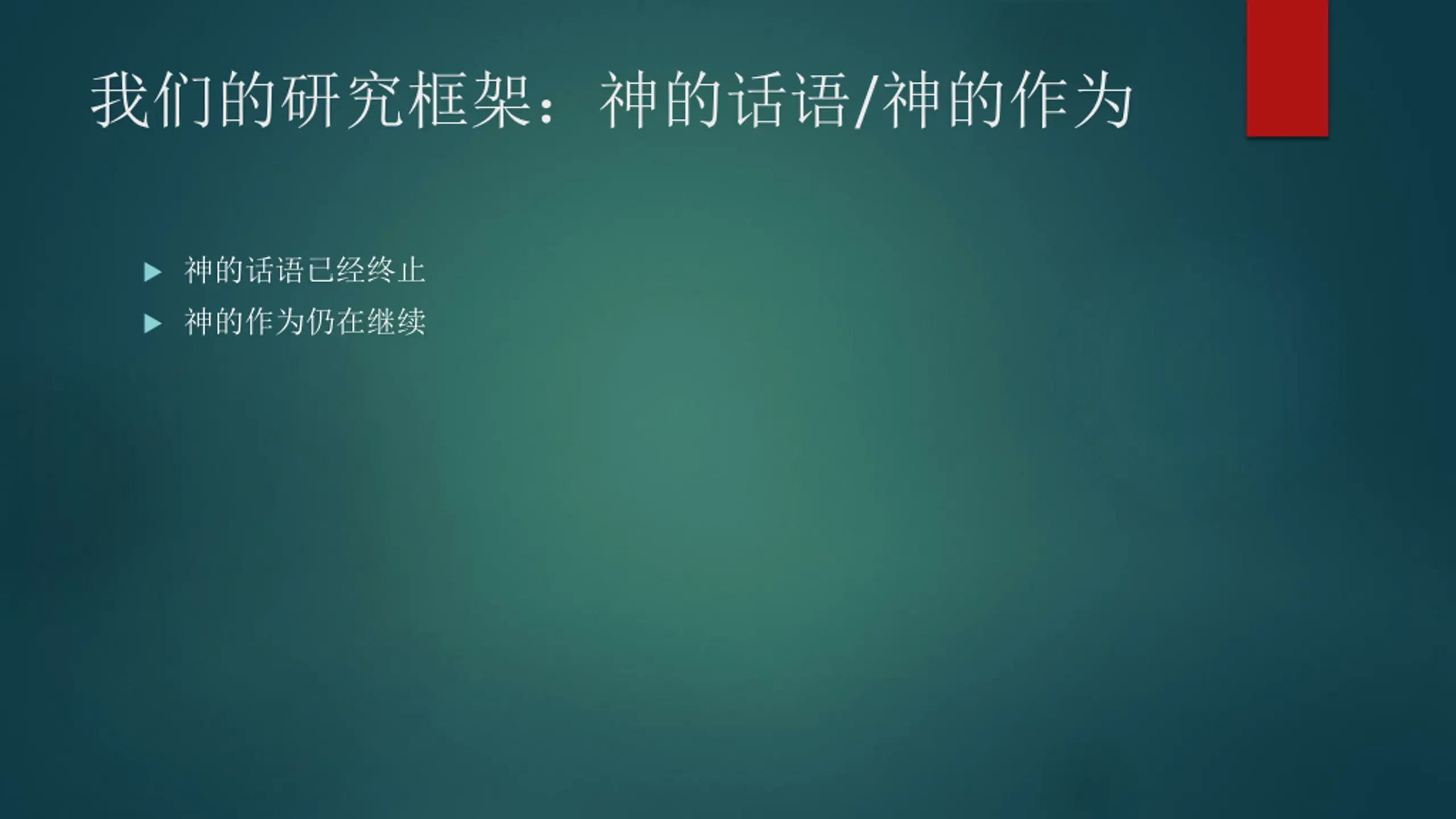 我们的研究框架:神的话语/神的作为 神的话语已经终止 神的作为仍在继续