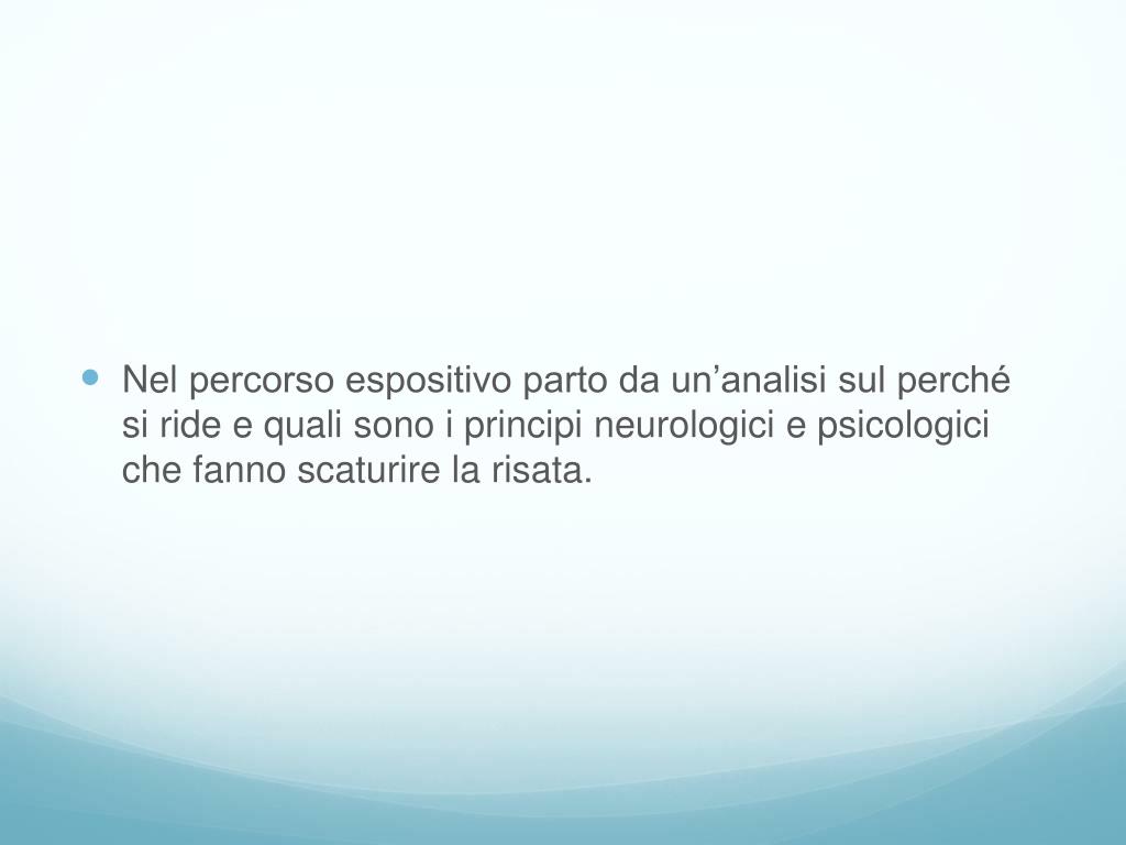 Perché ridiamo? La risata è una manifestazione che noi tutti giornalmente proviamo e che è in genere associata a comicità benessere, umorismo, allegria ma anche a tristezza e rabbia (oltre che a cause fisiche come al gas esilarante o al solletico). Solo l’uomo è capace di ridere,tragli altri animali solo alcune scimmie se provocate fisicamente (solletico) accennano un riso. Dunque probabilmente è frutto dell’evoluzione, di una intelligenza superiore, è un qualcosa che ci differisce dalle altre specie. Molti studiosi hanno analizzato il fenomeno della risata: hanno trovato che la risata è in realtà un fenomeno molto complesso che coinvolge numerose capacità percettive, creative, analitiche e linguistiche. A seconda del tipo di battuta per esempio, nel cervello si attivano aree e meccanismi differenti