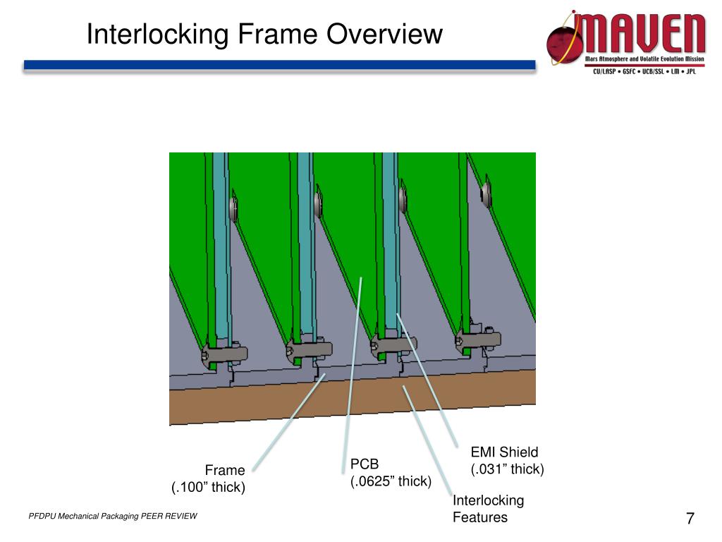 Interlocking Frame Overview EMI Shield (.031” thick) PCB (.0625” thick) Frame (.100” thick) Interlocking Features