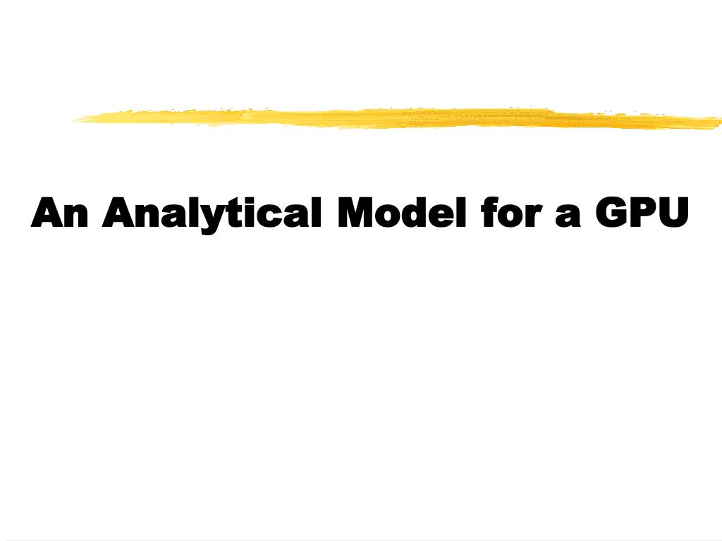 MWP and CWP • Memory Warp: • The warp that is waiting for memory values • Memory Warp waiting period: • The time period from right after one warp sent memory requests until all the memory requests from the same warp are serviced. • CWP (Computation Warp Parallelism) • represents the number of warps that the SM processor can execute during one memory warp waiting period plus one. • MWP (Memory Warp Parallelism) • represents the maximum number of warps per SM that can access the memory simultaneously during memory warp waiting period