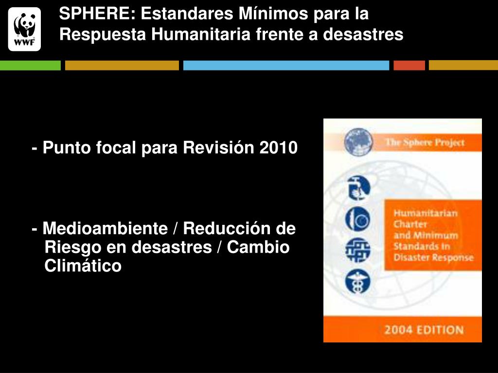 SPHERE: Estandares Mínimos para la Respuesta Humanitaria frente a desastres - Punto focal para Revisión 2010 - Medioambiente / Reducción de Riesgo en desastres / Cambio Climático