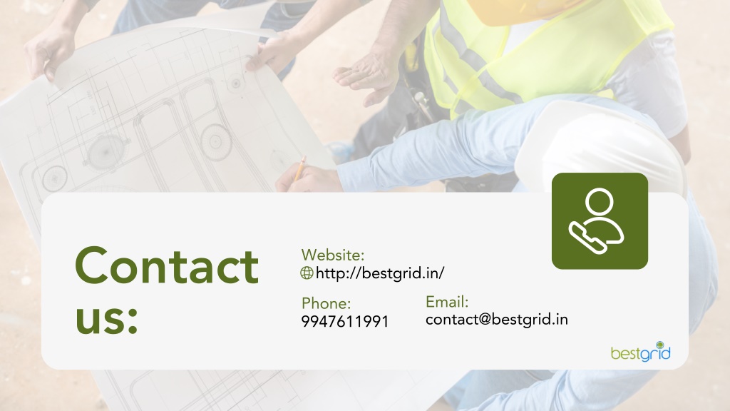 6. Contact us: Website: http://bestgrid.in/ Email: contact@bestgrid.in Phone: 9947611991