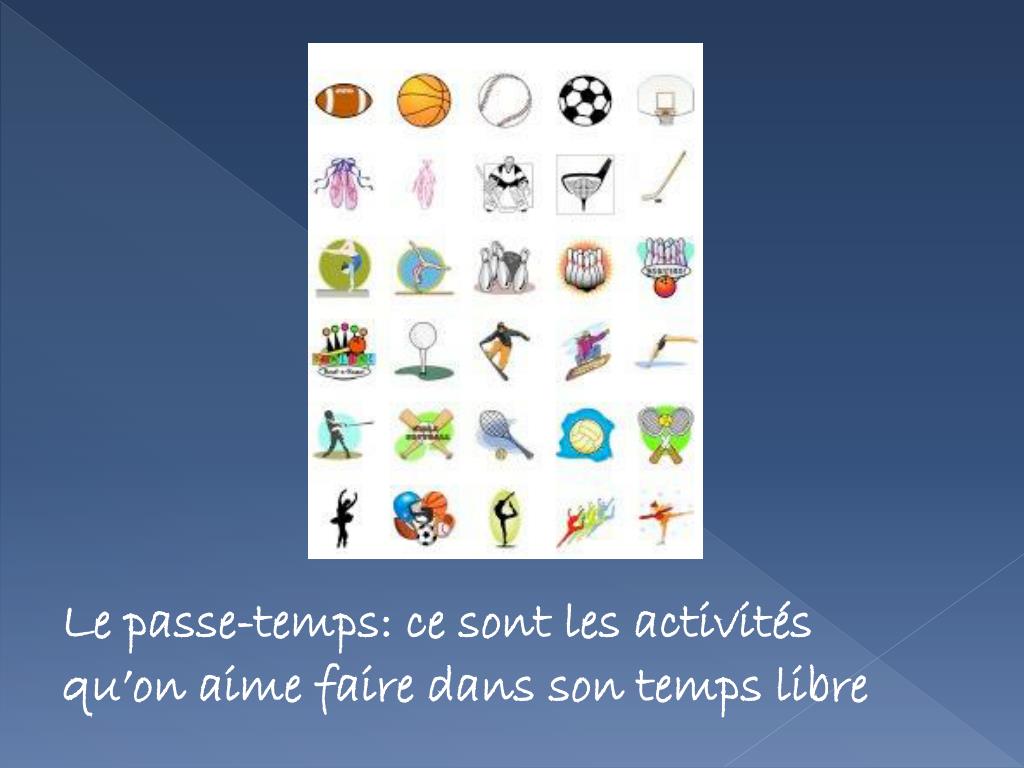 Le passe-temps: cesont les activitésqu’onaime faire dans son temps libre