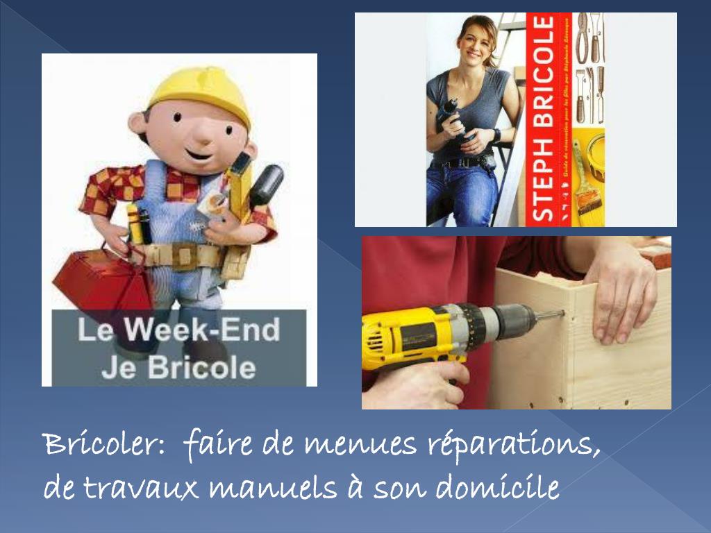 Bricoler: faire de menuesréparations, de travauxmanuels à son domicile