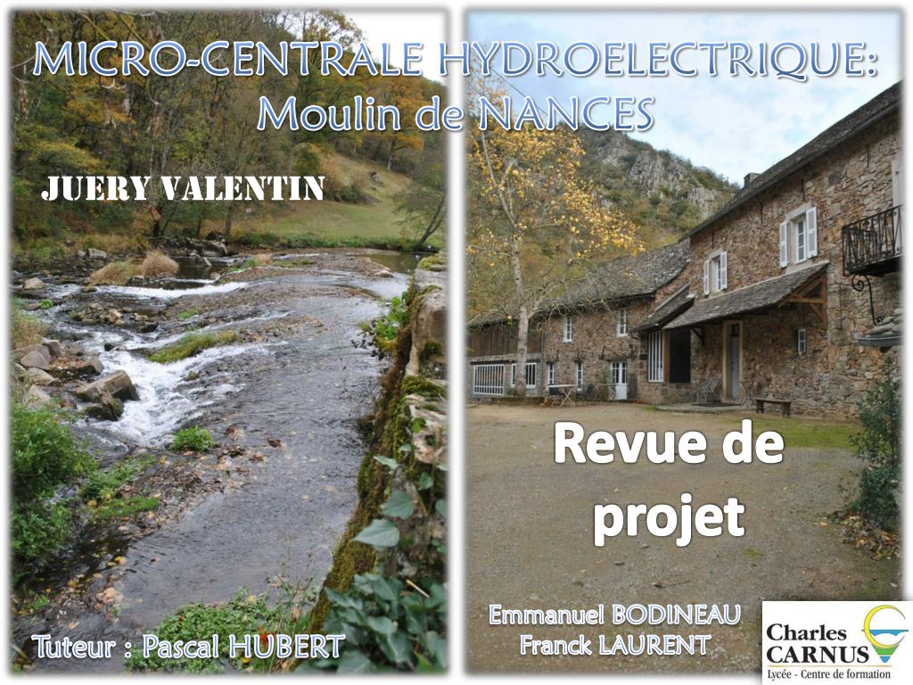 MICRO-CENTRALE HYDROELECTRIQUE: Moulin de NANCES JUERY Valentin Revue de projet Emmanuel BODINEAU Franck LAURENT Tuteur : Pascal HUBERT
