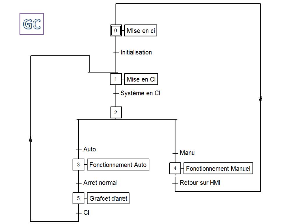 Automatisation: Partie fonctionnelle Retour CI Manu HMI Auto CI Init /ATU./Défaut GPN HMI Arrêt ATU+Défaut GS