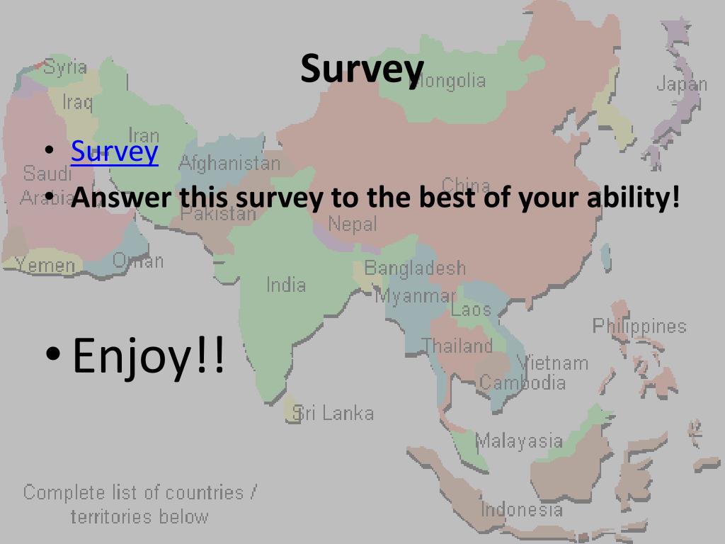Survey • Survey • Answer this survey to the best of your ability! • Enjoy!!