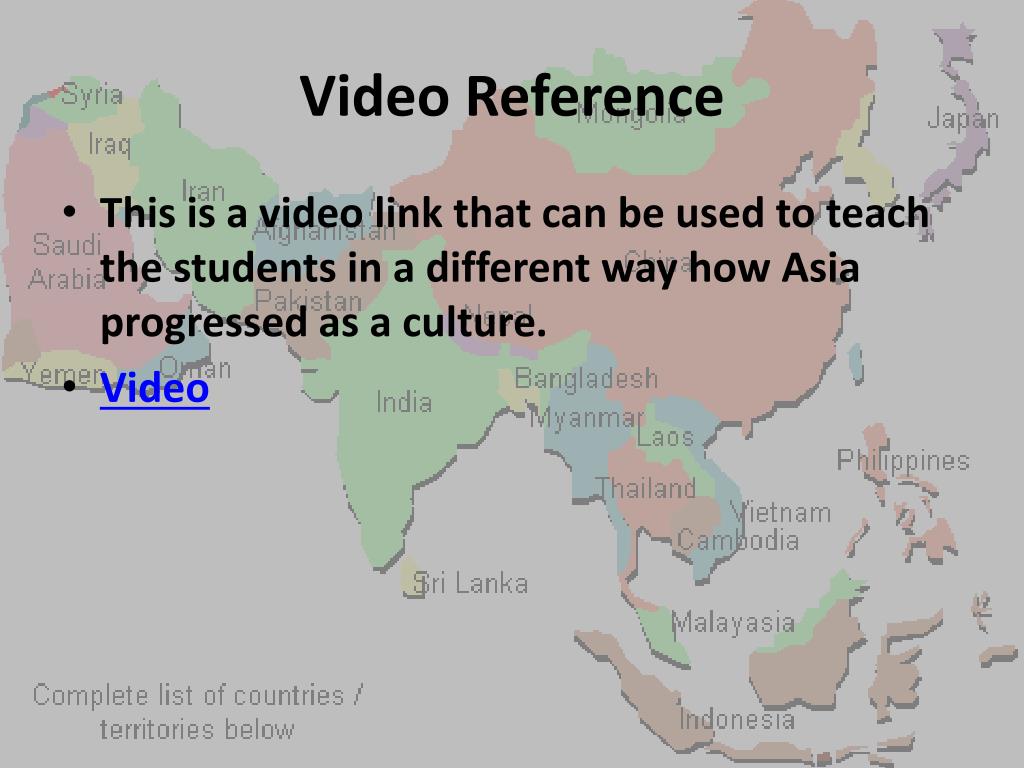 Video Reference • This is a video link that can be used to teach the students in a different way how Asia progressed as a culture. • Video