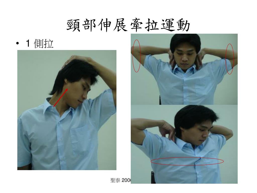 1 側拉 2 滾肩 頸部伸展牽拉運動 聖泰 2006 07 01