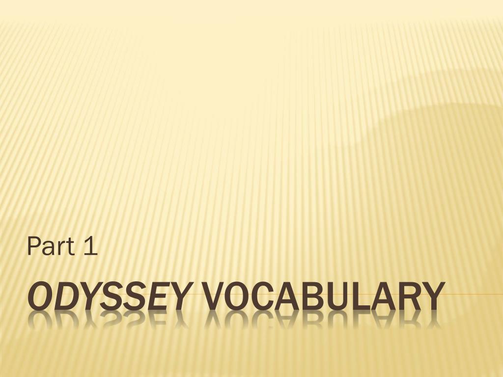Part 1. Odyssey Vocabulary. TERMS. Plundered Guile. Mutinous lee. Prodigious whim. quiver din. Victuals Lugger. Divers Sage . Kine Ardor . travail maelstrom. GODS, ETC. Muse: goddess that inspires art Helios: sun god Zeus: kings of the gods