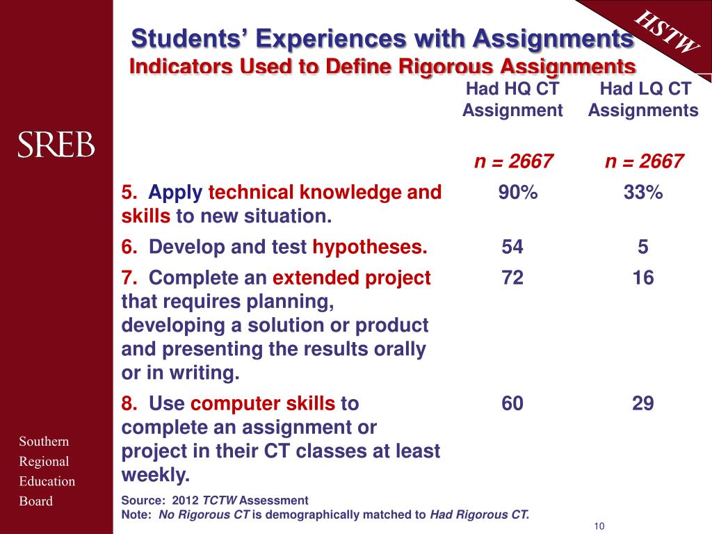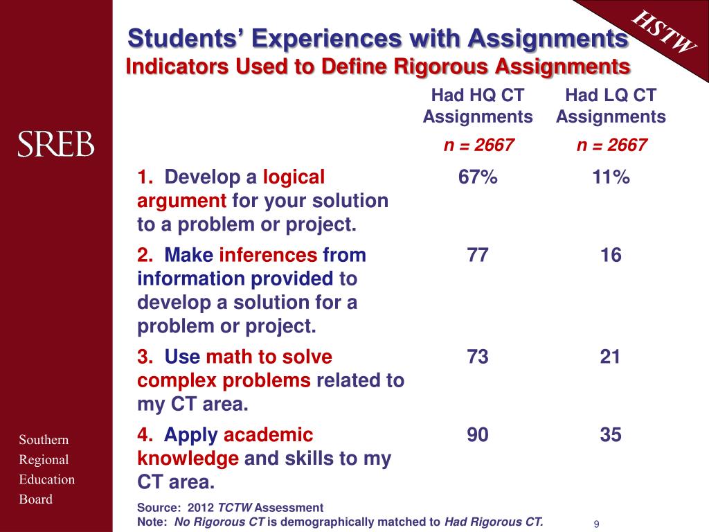 Students’ Experiences with Assignments Indicators Used to Define Rigorous Assignments