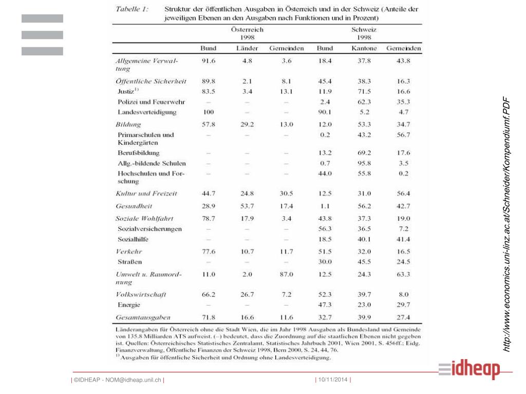 Aufgabenprofile der Verwaltung im Vergleich: Sozialpolitik • In skandinavischen Ländern und in Grossbritannien bei den Gemeinden • In napoleonisch-zentralistischen Ländern beim Zentralstaat. • In föderal-subsidiären Staaten bei freien oder konfessionellen Trägern Kuhlmann/Wollmann (2010)