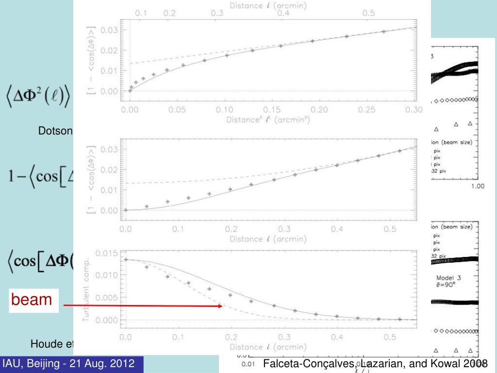 Structure Function Dotson 1996 beam Houde et al. 2009, ApJ, 706, 1504 5 IAU, Beijing - 21 Aug. 2012 Falceta-Conçalves, Lazarian, and Kowal 2008