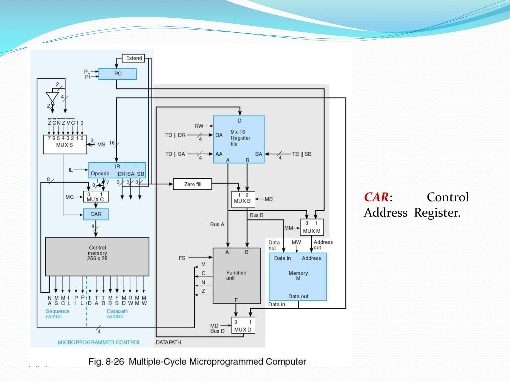 Micro-programmed Control • A control unit with its binary control values stored as words in memory is called a micro-programmed control. • Each word in the control memory contains a microinstruction that specifies one or more micro-operations for the system. • The micro-program is usually fixed at the system design time and so is stored in ROM.