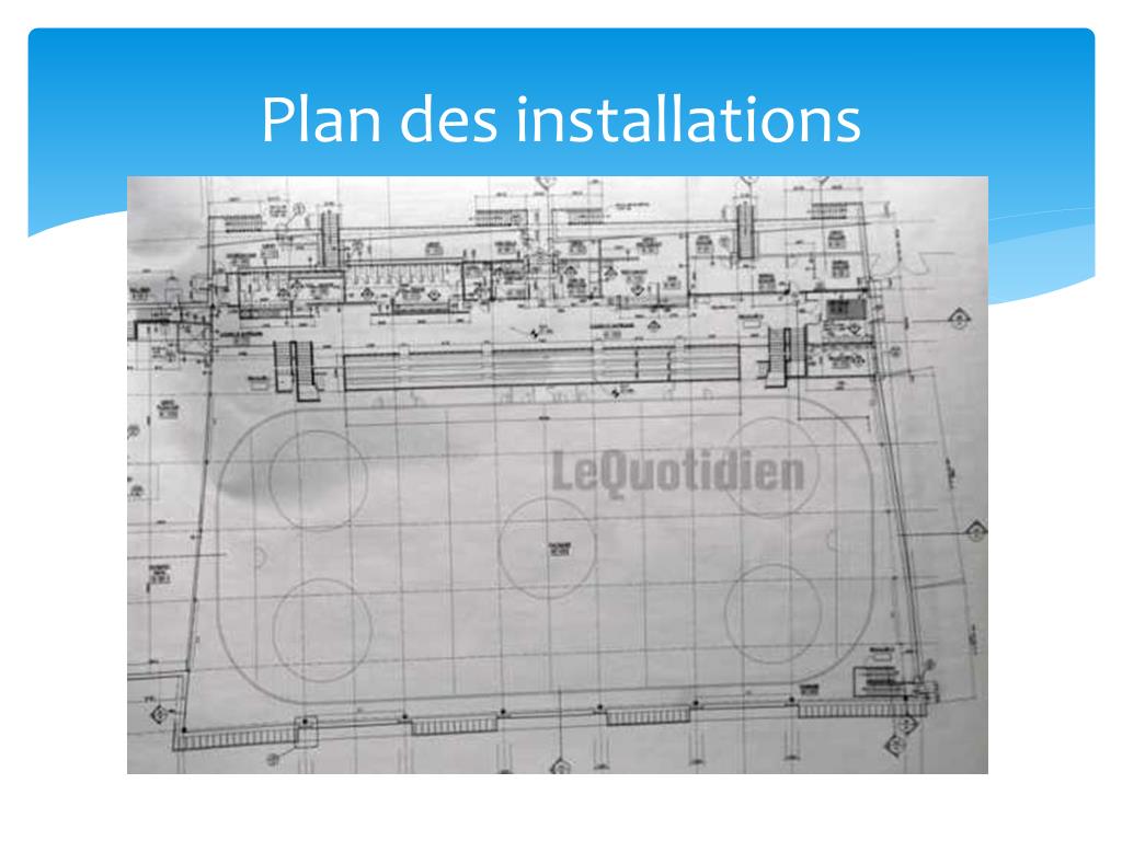 Description intérieur • 3 070m² au sol et intègrel’ensemble de sesfonctionssurtroisniveaux. • Premier niveau: • Patinoire 85X200 pieds. • Salle de joueur(football, soccer, hockey). • Bureau pour les entraineurs. • Salle de premier soin. • Rez-de-chaussée: • Usages publics. • Salles de classe. • Loges • Gradins extérieurs: • Peutrecevoir 1 000 personnes. • Intégré au bâtiment.