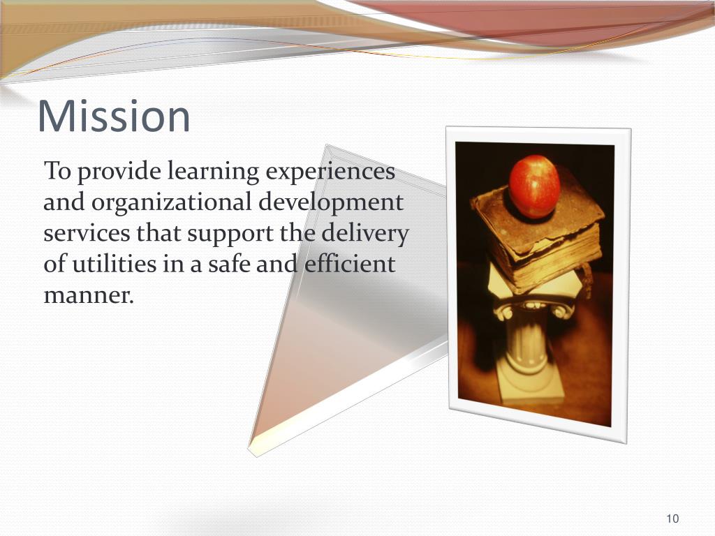 Mission To provide learning experiences and organizational development services that support the delivery of utilities in a safe and efficient manner.
