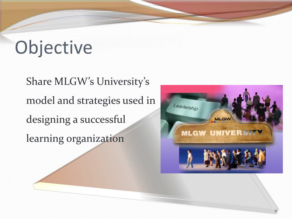 Objective Share MLGW’s University’s model and strategies used in designing a successful learning organization