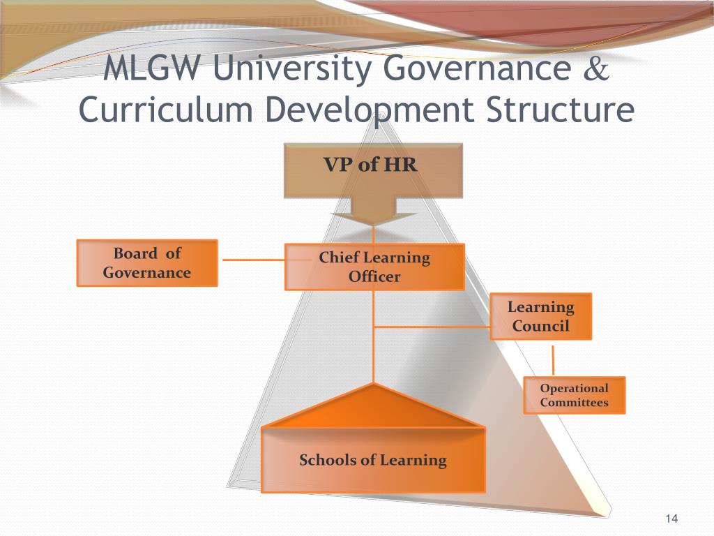 MLGW University Governance & Curriculum Development Structure VP of HR Board of Governance Chief Learning Officer Learning Council Operational Committees Schools of Learning