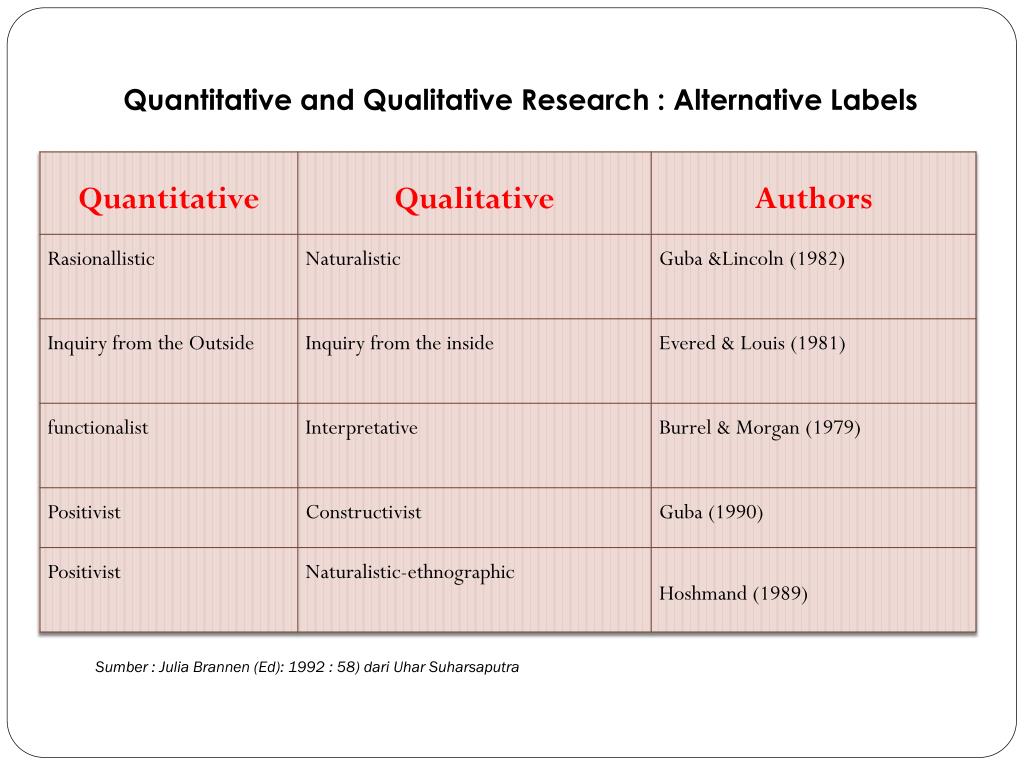 Quantitative and Qualitative Research : Alternative Labels Sumber : Julia Brannen (Ed): 1992 : 58) dariUharSuharsaputra