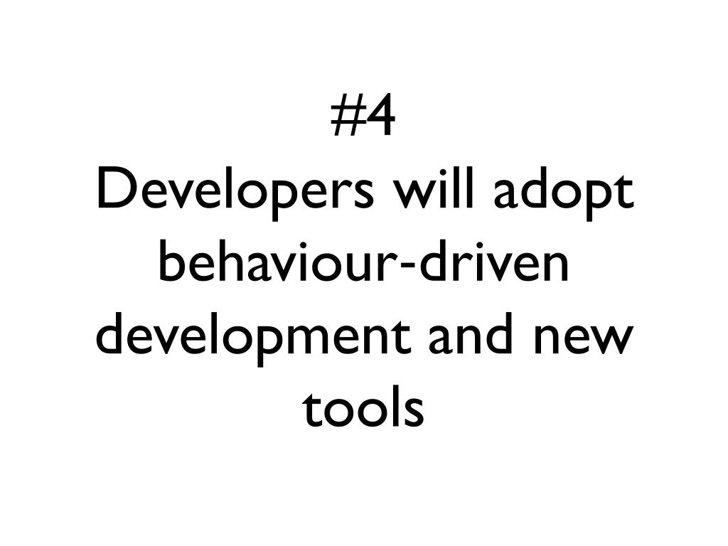 #3Specification by Example will become the new buzzword (includes ATDD, BDD, TDD etc.) I was wrong