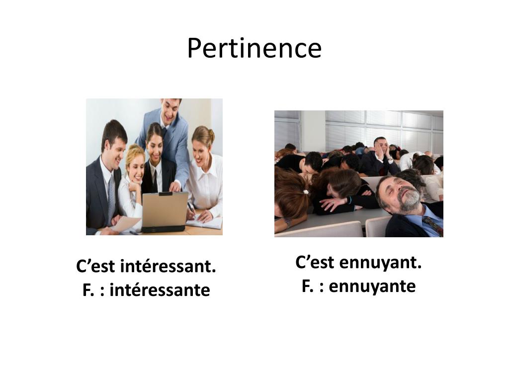 Pertinence C’est ennuyant.F. : ennuyante C’est intéressant.F. : intéressante