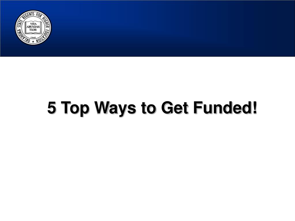 5 Top Ways to Get Funded! Read the RFP. Read the RFP. READ THE RFP. READ THE RFP! READ THE RFP!!! (RFP = Request for Proposal)