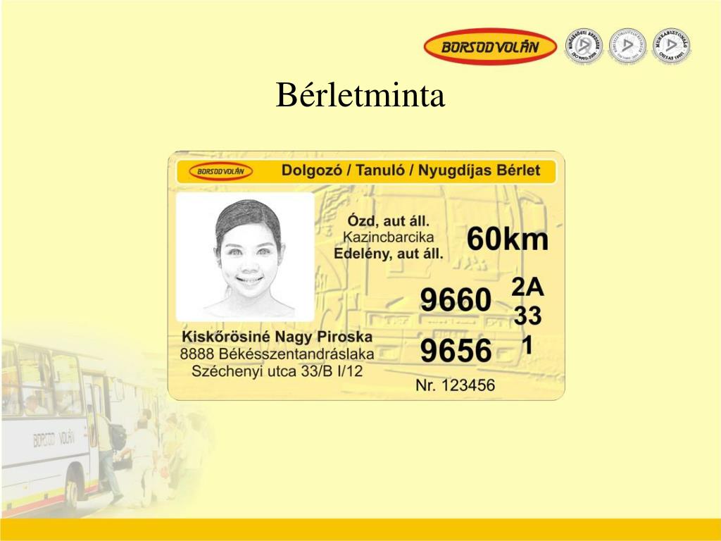 Volán Egyesülés 2006.12.05. Bérletminta. Kártya vizualizáció. Fénykép Név Lakcím Helyközi viszonylat induló, átszálló és érkező állomása Helyközi viszonylat km-övezete 2 település 2 db helyi díjterméke Kártyaszám. Személyes adatok kezelése. Személyi adatokból személyi kód képzése