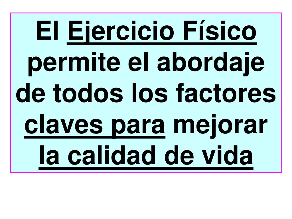 El Ejercicio Físico permite el abordaje de todos los factores claves para mejorar la calidad de vida