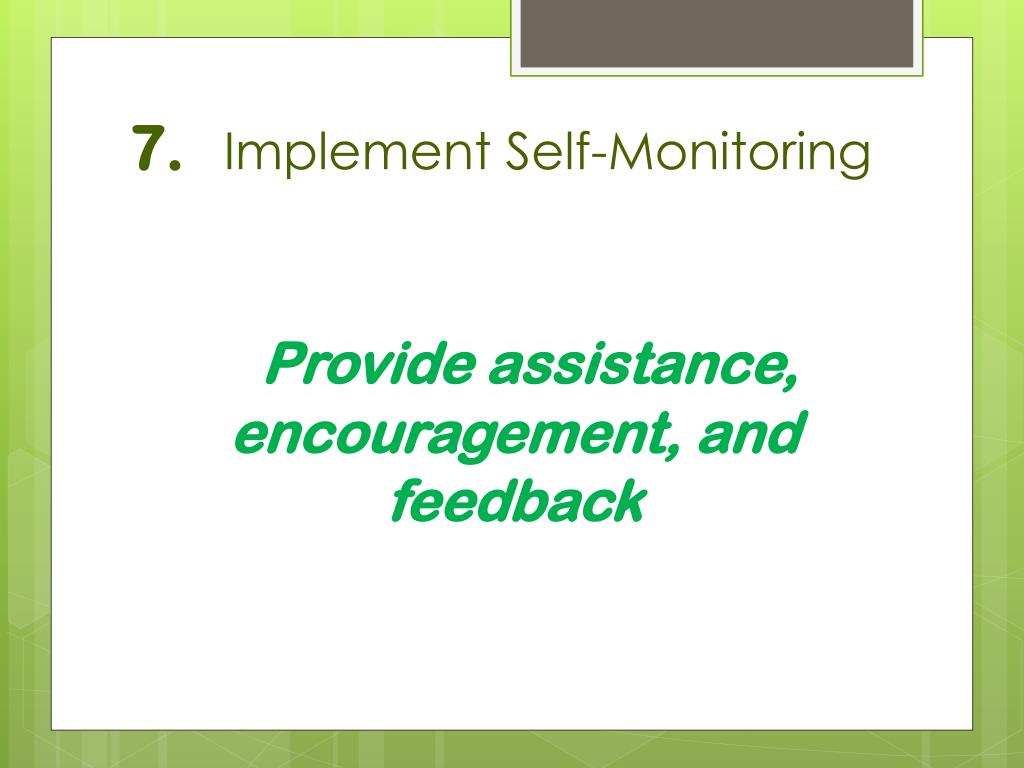 7. Implement Self-Monitoring Provide assistance, encouragement, and feedback