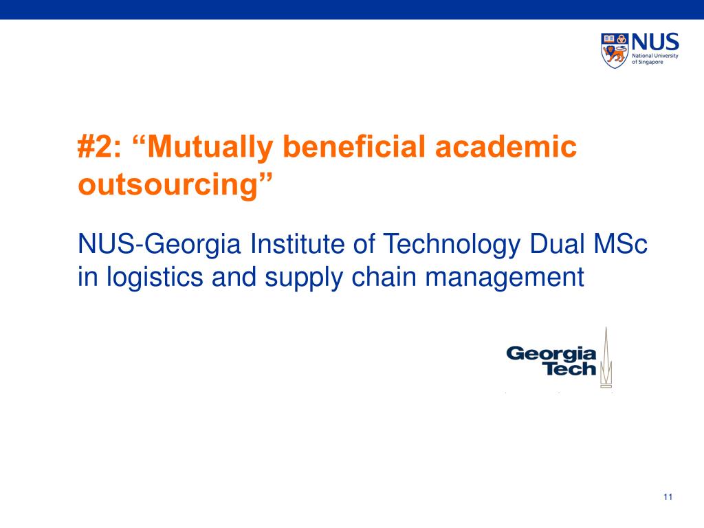 #2: “Mutually beneficial academic outsourcing” • NUS-Georgia Institute of Technology Dual MSc • in logistics and supply chain management