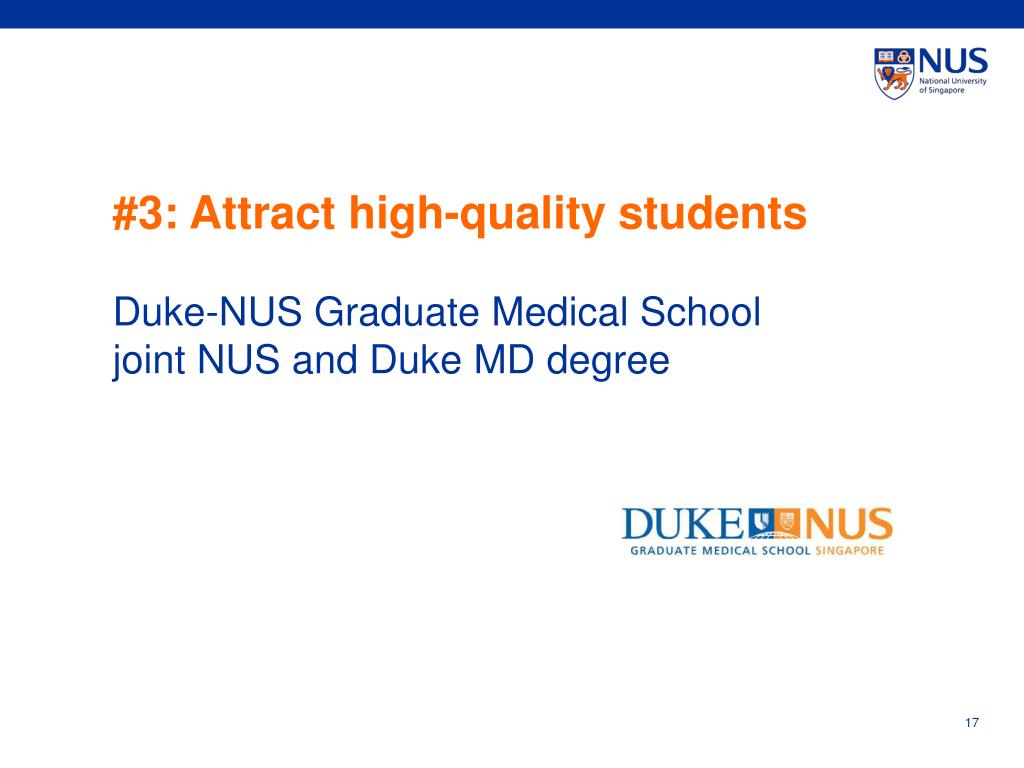 #3: Attract high-quality students • Duke-NUS Graduate Medical School • joint NUS and Duke MD degree