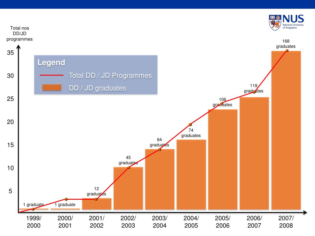 Total nos DD/JD programmes 168 graduates 35 30 25 20 15 10 5 Legend Total DD / JD Programmes DD / JD graduates 119 graduates 106 graduates 74 graduates 64 graduates 45 graduates 12 graduates 1 graduate 1 graduate 1999/ 2000 2000/ 2001 2001/ 2002 2002/ 2003 2003/ 2004 2004/ 2005 2005/ 2006 2006/ 2007 2007/ 2008