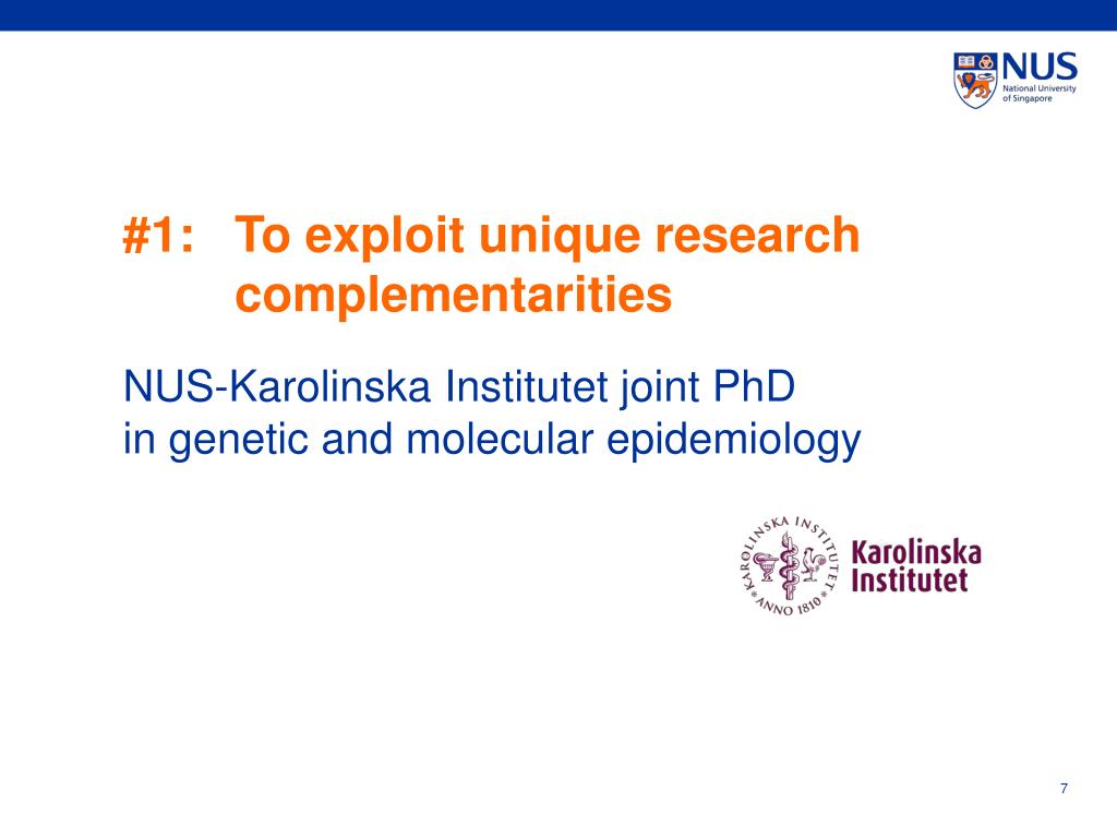 #1: To exploit unique research complementarities NUS-Karolinska Institutet joint PhD in genetic and molecular epidemiology