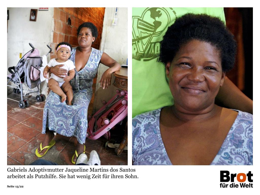 Gabriels Adoptivmutter Jaqueline Martins dos Santos arbeitet als Putzhilfe. Sie hat wenig Zeit für ihren Sohn.