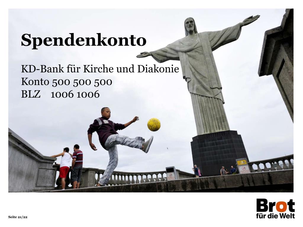Spendenkonto KD-Bank für Kirche und Diakonie Konto 500 500 500 BLZ 1006 1006