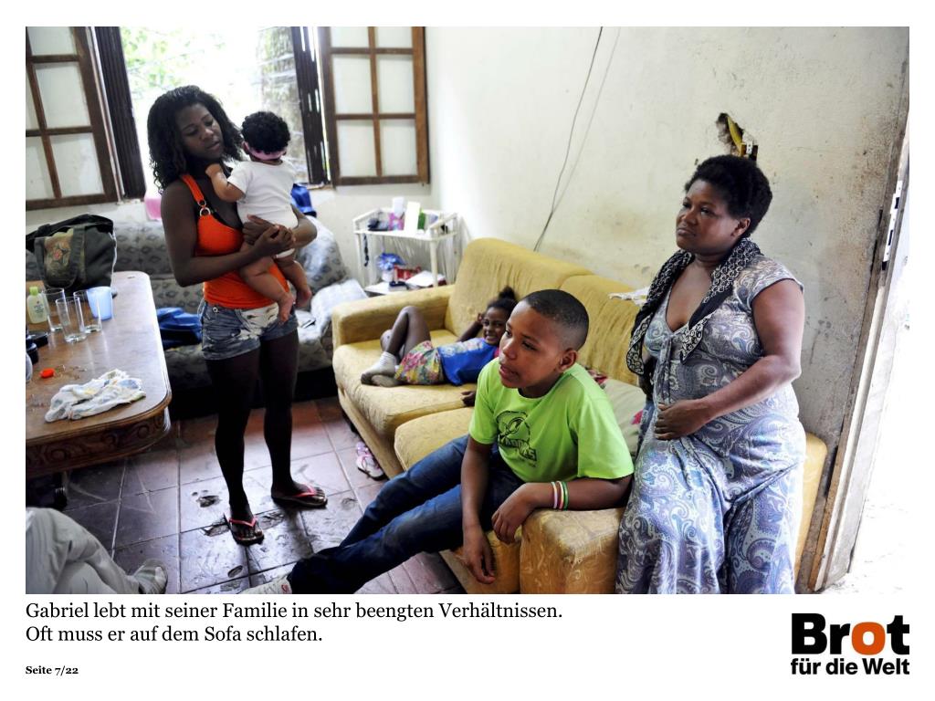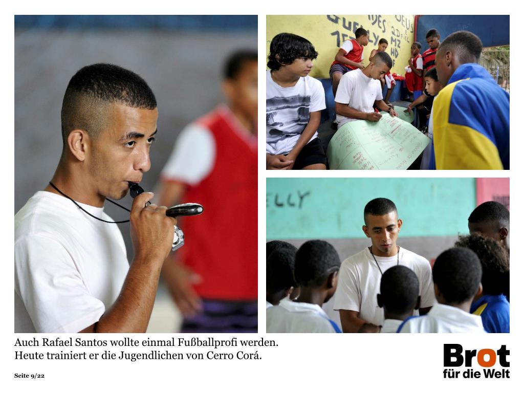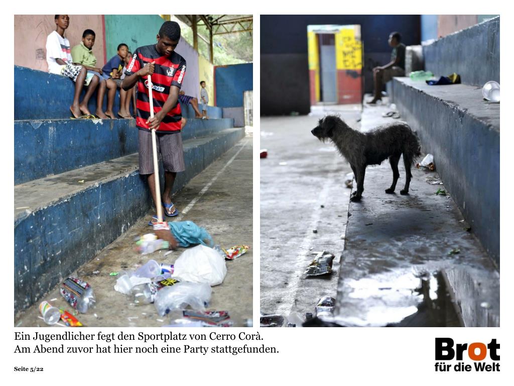 Sie sahen eine Präsentation zum Projekt des Projektpartners Se Essa Rua Fosse Minha (SERUA) Die Himmelsstürmer von Cerro Corá Projektemagazin 2013/14 Herausgeber Brot für die Welt – Evangelischer Entwicklungsdienst Postfach 40 1 64 10061 Berlin Tel 030 65211 1189 service@brot-fuer-die-welt.de www.brot-fuer-die-welt.de/projekte/serua RedaktionThorsten Lichtblau TextSandra Weiss FotosFlorian Kopp Gestaltung Thomas Knödl Berlin, August 2013