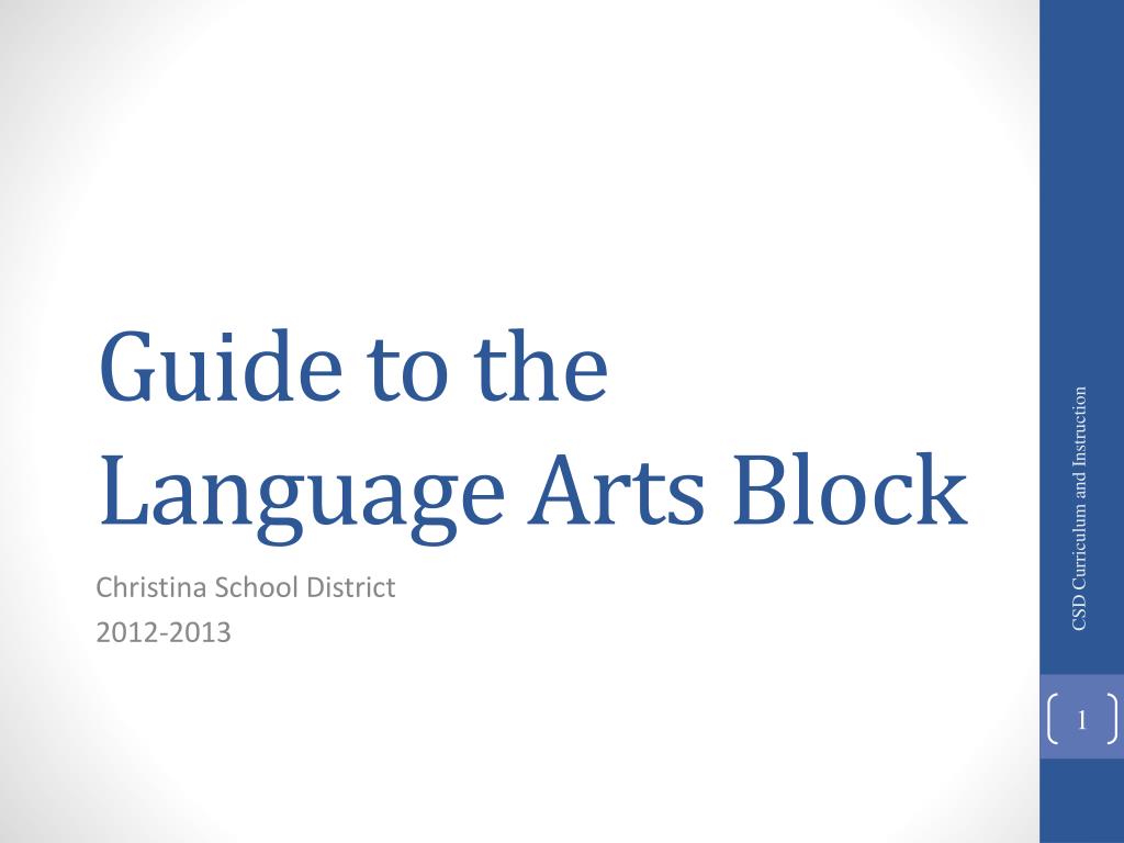 Guide to the Language Arts Block CSD Curriculum and Instruction Christina School District 2012-2013