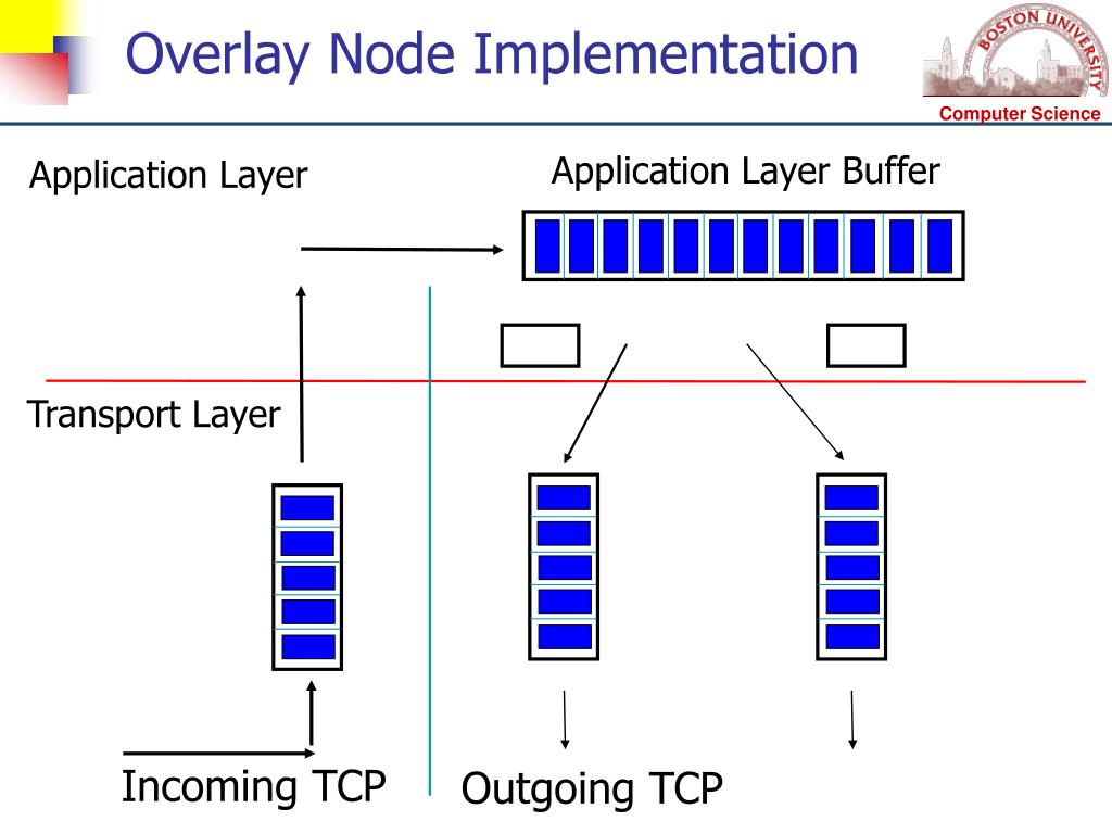 Overlay Node Implementation Application Layer Buffer Application Layer Transport Layer Incoming TCP Outgoing TCP