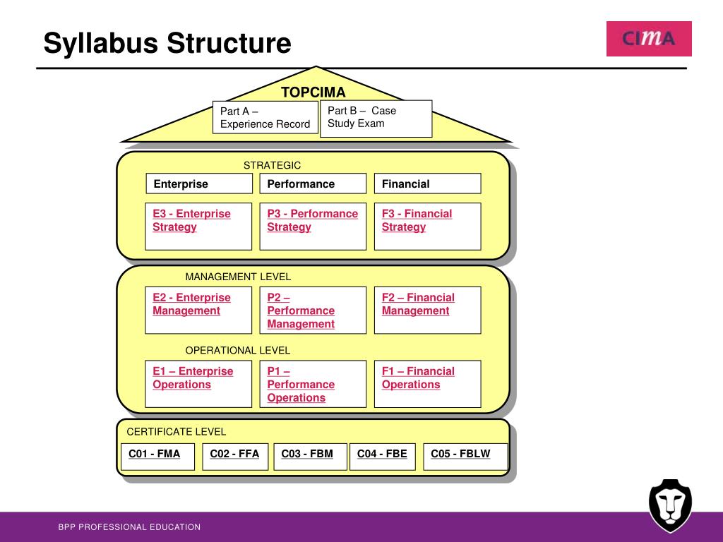 TOPCIMA Part B – Case Study Exam Part A – Experience Record STRATEGIC Enterprise Performance Financial E3 - Enterprise Strategy P3 - Performance Strategy F3 - Financial Strategy MANAGEMENT LEVEL E2 - Enterprise Management P2 – Performance Management F2 – Financial Management OPERATIONAL LEVEL E1 – Enterprise Operations P1 – Performance Operations F1 – Financial Operations CERTIFICATE LEVEL C01 - FMA C02 - FFA C03 - FBM C04 - FBE C05 - FBLW Syllabus Structure