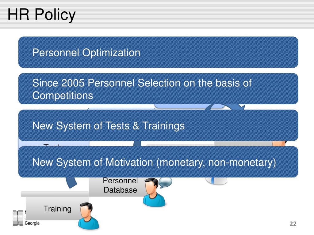 HR Policy Personnel Optimization Since 2005 Personnel Selection on the basis of Competitions New System of Tests & Trainings Tests Tests Tests New System of Motivation (monetary, non-monetary) Training Personnel Database Appointment Promotion